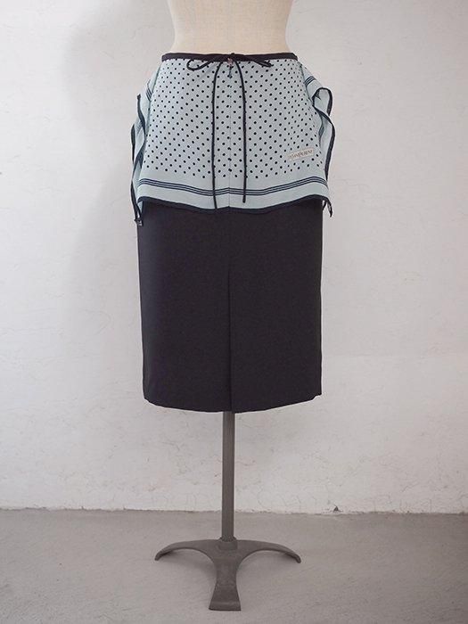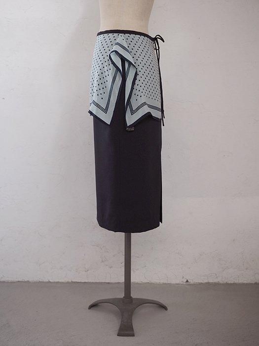 [即納]Semi-tight middle skirt with scarf(navy dot)